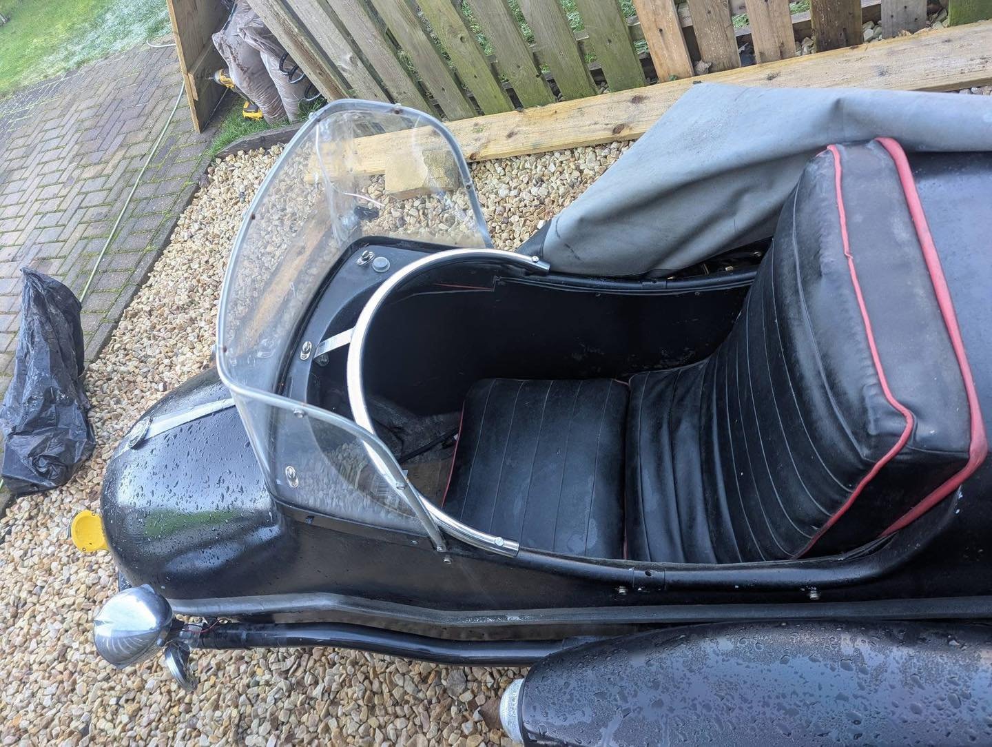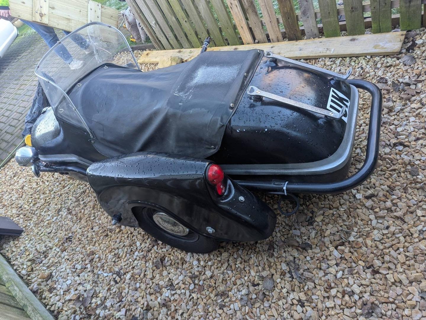 This Watsonian sidecar is a solid and practical addition for motorcycle enthusiasts, collectors, or anyone looking to convert a sidecar into a functional utility setup. Priced at £600, this unit comes with a rain cover, as shown in the pictures, helping protect passengers or cargo from wet weather. In addition, there is another cover that fits above the screen, which provides extra protection and comfort, though it was not installed for the photos due to cold weather.